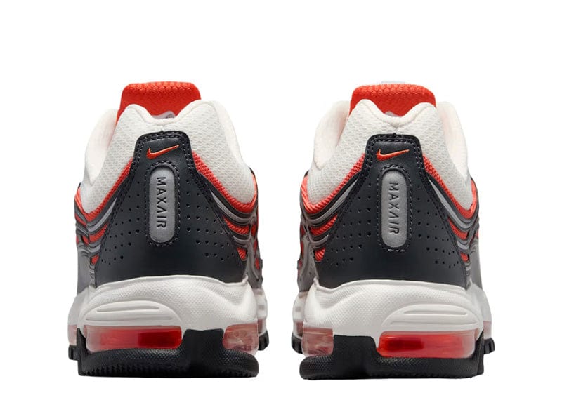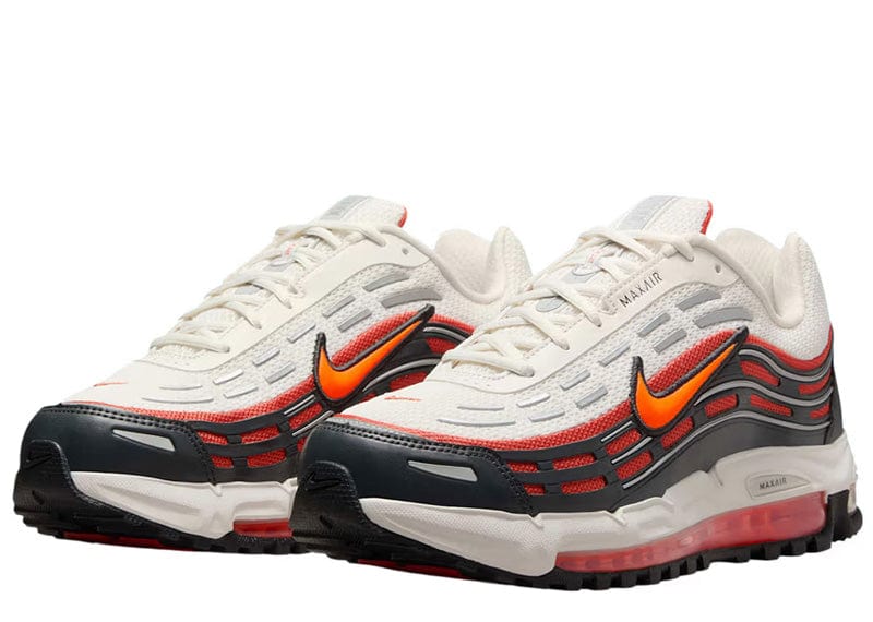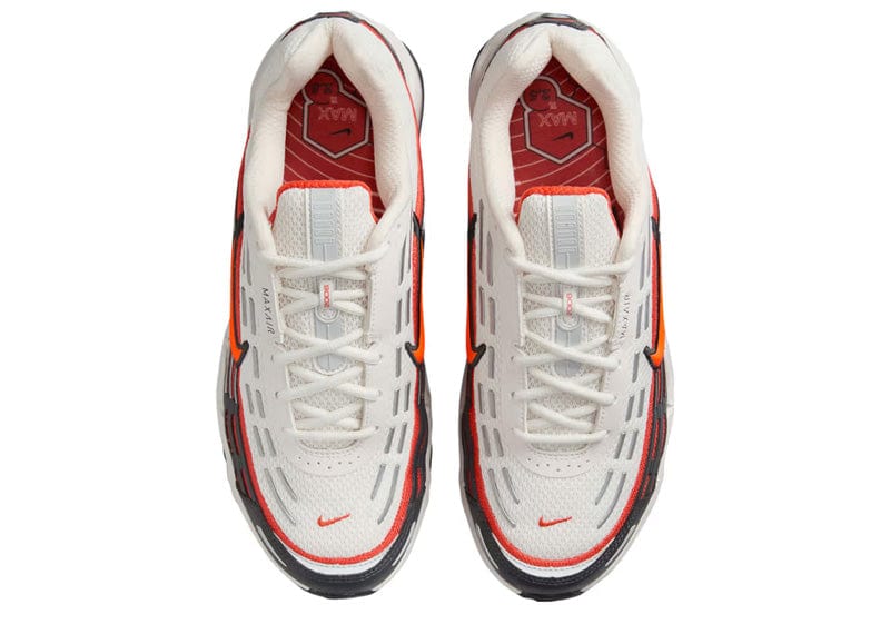 The Nike Air Max TL 2.5 in the "Phantom/Total Orange" colorway is a dynamic and eye-catching addition to the Air Max lineup, offering both style and performance. This model features a sleek and modern design, with a "Phantom" colored upper crafted from a mix of breathable mesh and durable synthetic materials. The subtle, off-white tones of the Phantom color provide a versatile and understated base, while bold "Total Orange" accents on the Swoosh, air unit, and other detailing add a vibrant pop of color that brings the shoe to life