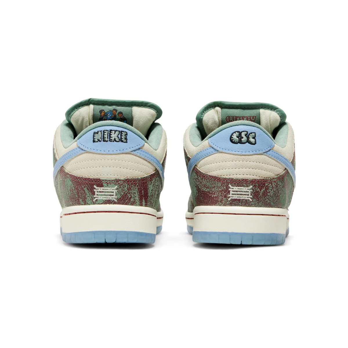 The Crenshaw Skate Club x Nike Dunk Low SB delivers the LA-based label’s colorful take on the retro silhouette. Designed in partnership with CSC founder Tobias McIntosh, the shoe features a tan suede base with cracked leather overlays inspired by the Crenshaw Square sign, a local landmark from McIntosh’s LA neighborhood. Mismatched Nike and CSC branding appears on each tongue tag and back tab, while the interior tongue features a daycare-inspired illustration that nods to Tobey’s childhood. The graphic makes a repeat appearance underneath the blue-tinged translucent rubber outsole.
