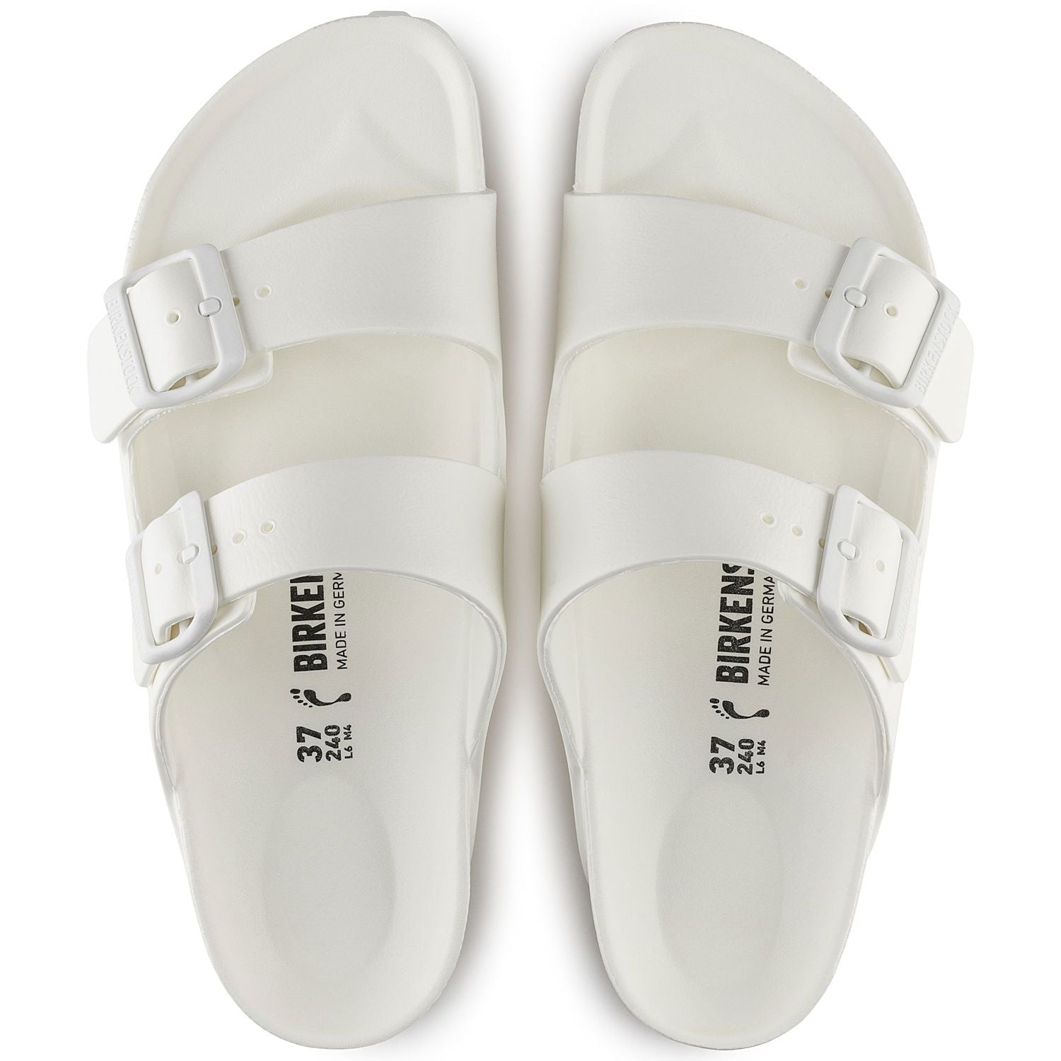 The legendary two-strap design from BIRKENSTOCK - the Arizona. Modeled on the cork original, this sandal is made from ultra lightweight and highly flexible EVA. These sandals are shock absorbing, waterproof, and skin-friendly. Wear them at the beach, in the garden, or around the gym and after workouts. It's the perfect addition to your classic BIRKENSTOCK sandals.